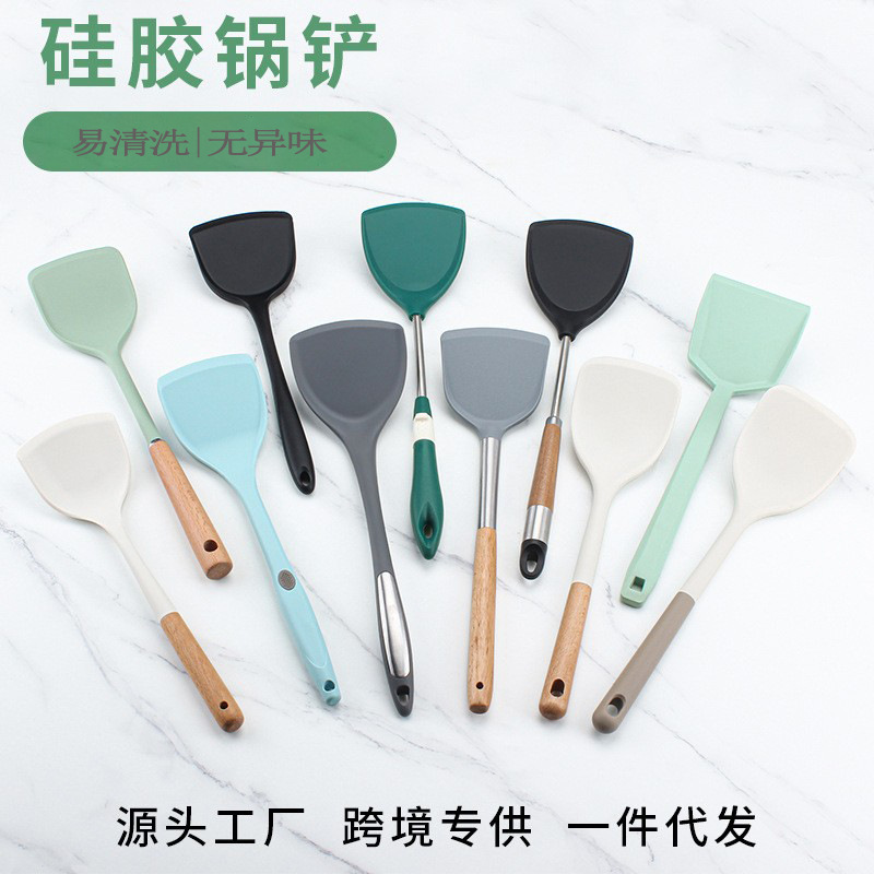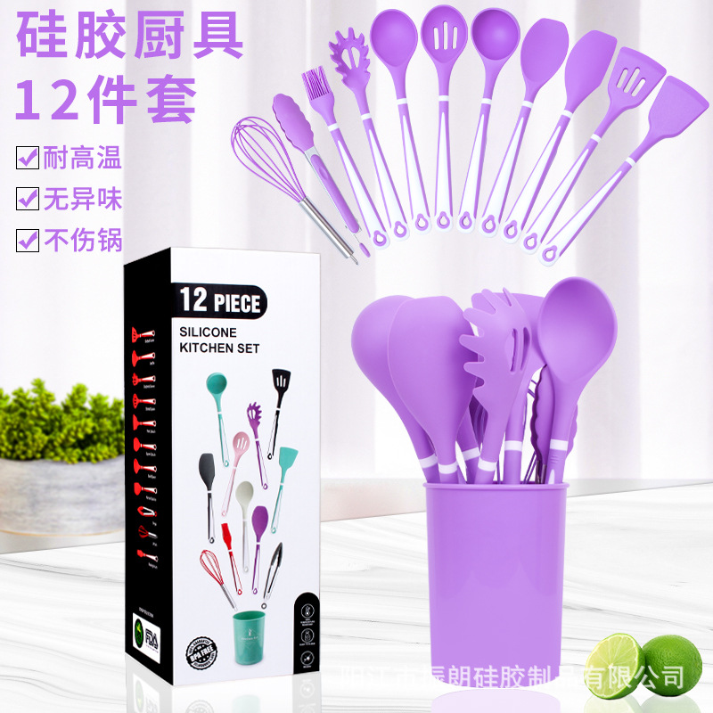 新しいクロスボーダーシリコンキッチン用品 12 点セット高温耐性ノンスティック調理スパチュラとスプーン 11 点セットと収納バケツ在庫あり