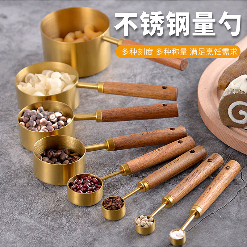 ベーキングツールステンレス計量スプーン計量カップセット目盛り付き木柄計量スプーン小スプーン大腹カップ台所用品