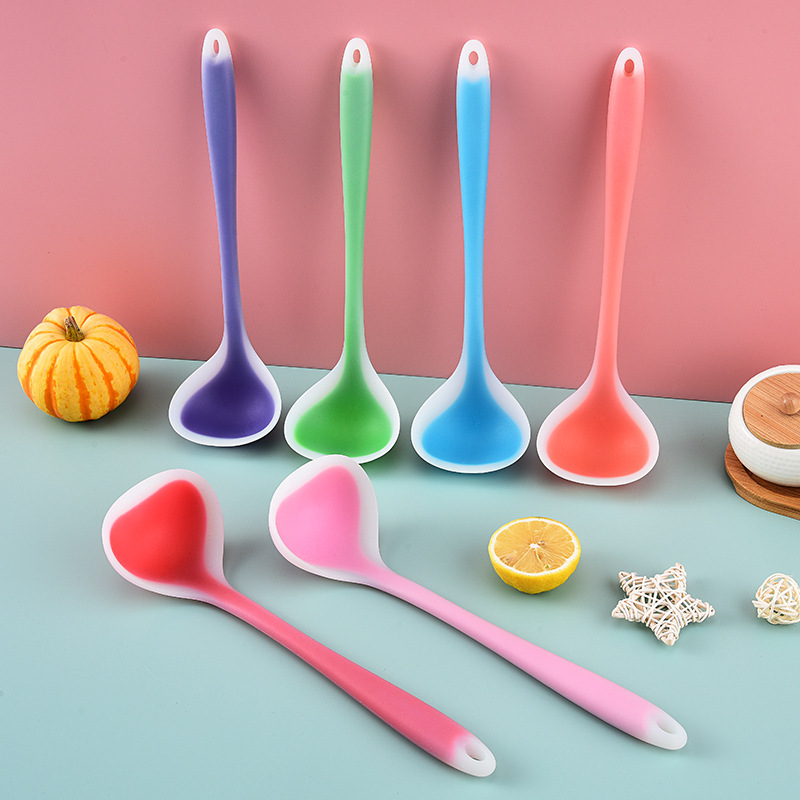 高温耐性シリコンスープスプーン、一体型半透明シリコンスプーン、高温耐性ノンスティック調理スプーン、工場出荷時