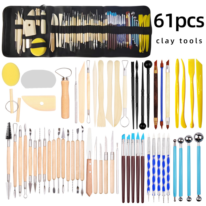 クロスボーダー陶芸道具61点セット石塑粘土製作道具泥塑圧痕シリカゲル彫刻刀セット道具