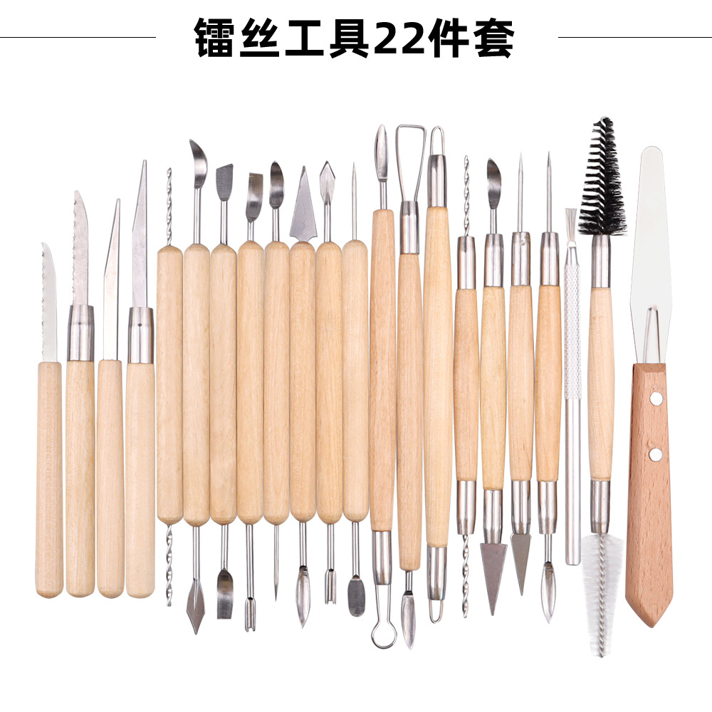 クロスボーダー陶芸道具22点セットラジウム刀彫刻道具diy木質軟陶泥プラスチック粘土道具