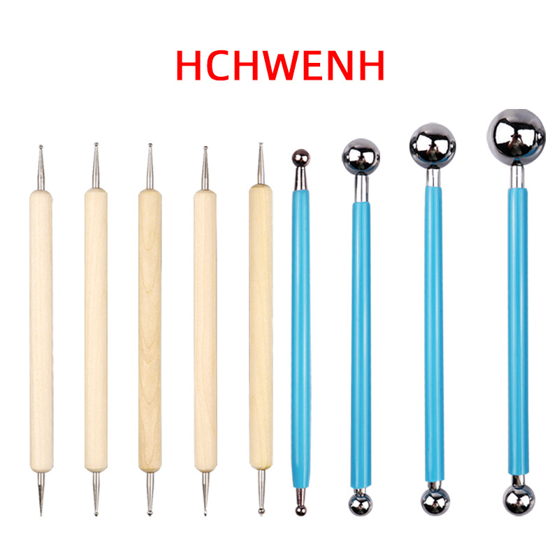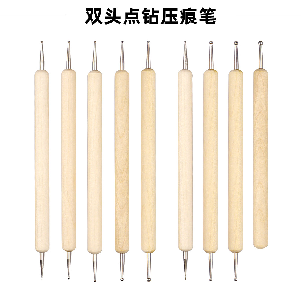 クロスボーダー電気商ステンレス円筒圧痕棒木製ダブルヘッドドリルペン9点セット陶泥工具メーカー