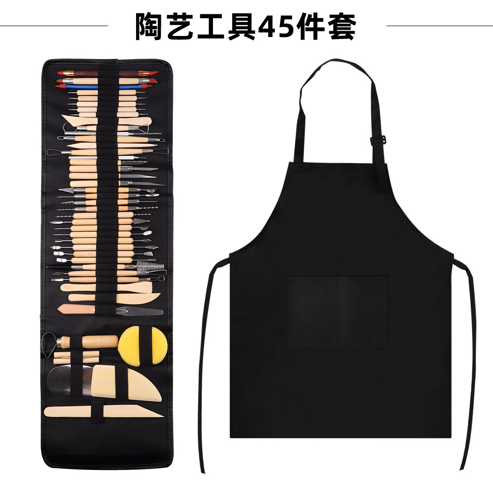 国境を越えた電気商泥の彫刻道具軟陶圧痕ペン木質二頭ドリルペン陶泥道具45点セット