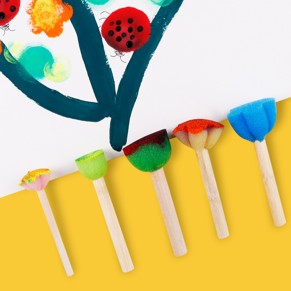 子供用落書き5本キノコ頭木製diyスポンジ印鑑幼児智益学生手作り拓印絵ブラシ