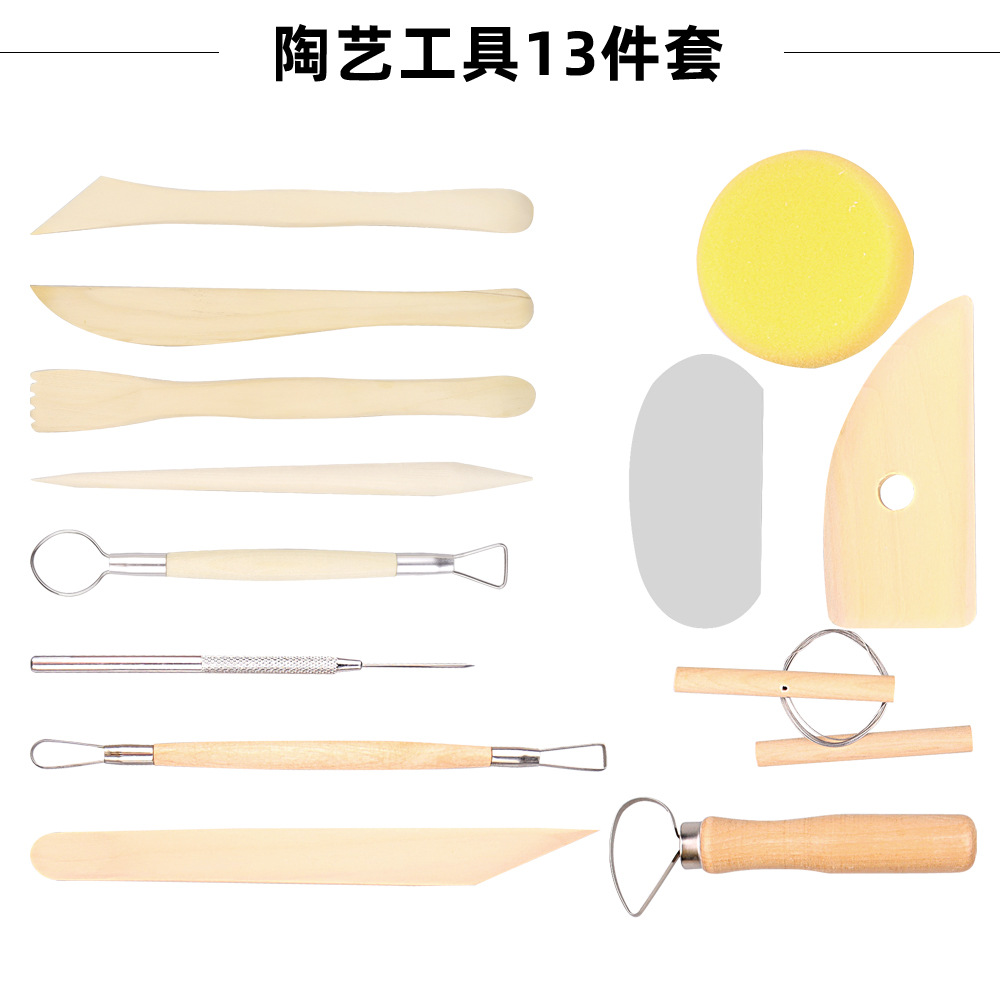 クロスボーダー陶芸泥塑工具13点セット木質補助彫刻工具diy海綿石塑粘土工具刀