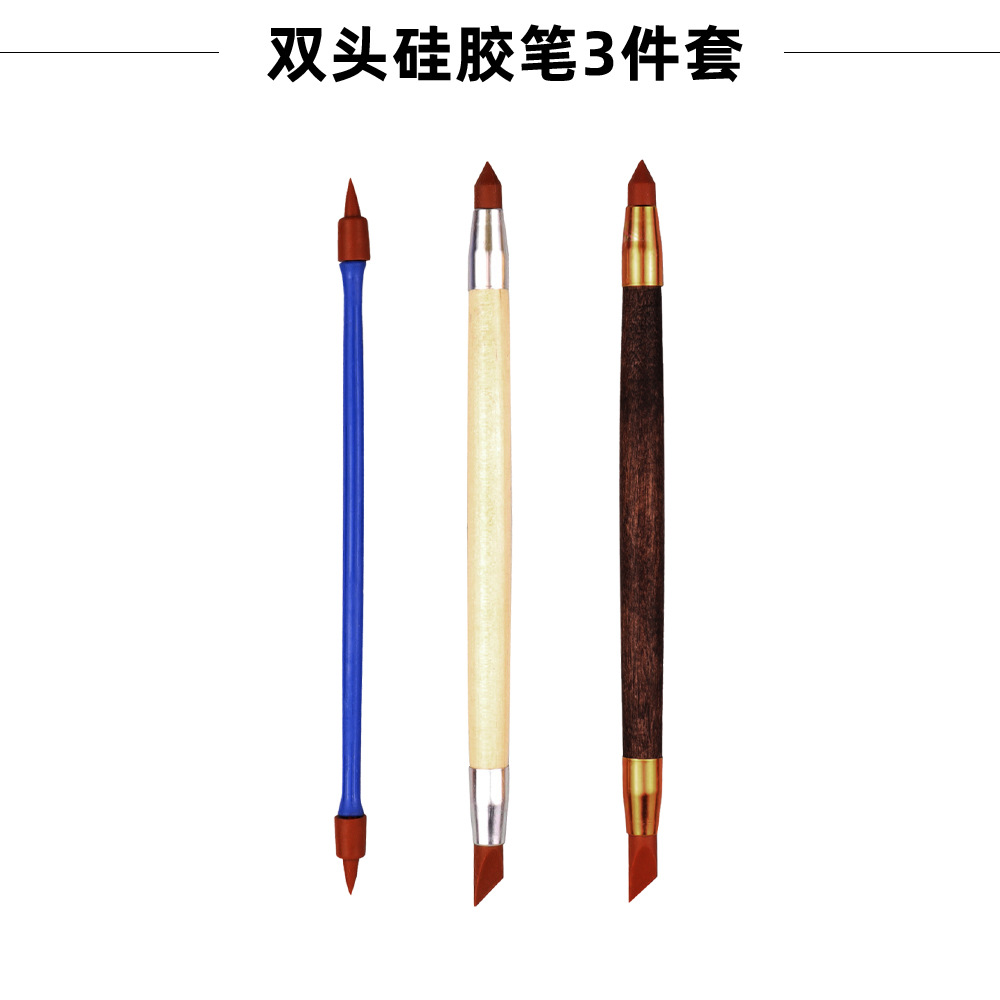 ダブルヘッドシリカゲルペン三点セット圧痕ゴムペン泥塑手作り工具陶泥工具消しゴムシリコンペン