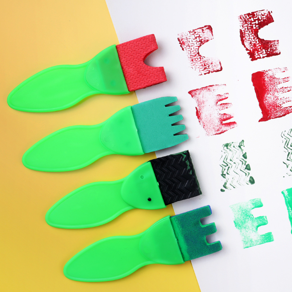 子供の漫画落書き印鑑スポンジブラシ絵画ツール4種類の図案diy赤ちゃん知育玩具美術用品