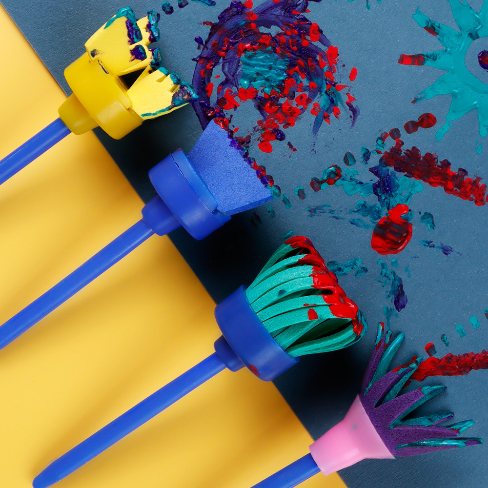 国境を越えたアマゾンの子供が絵を描く早教eva落書き創造ツールプラスチックスポンジ印鑑4本のほうきセット