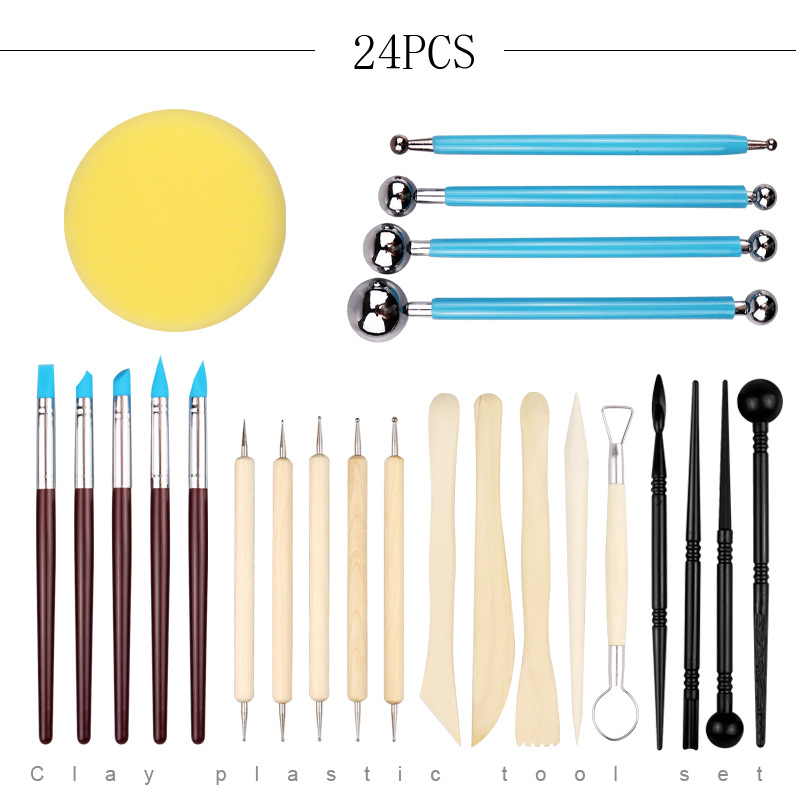 陶泥道具24点セット石塑粘土陶土道具精雕油泥陶芸セットdiy軟陶雕刻刀