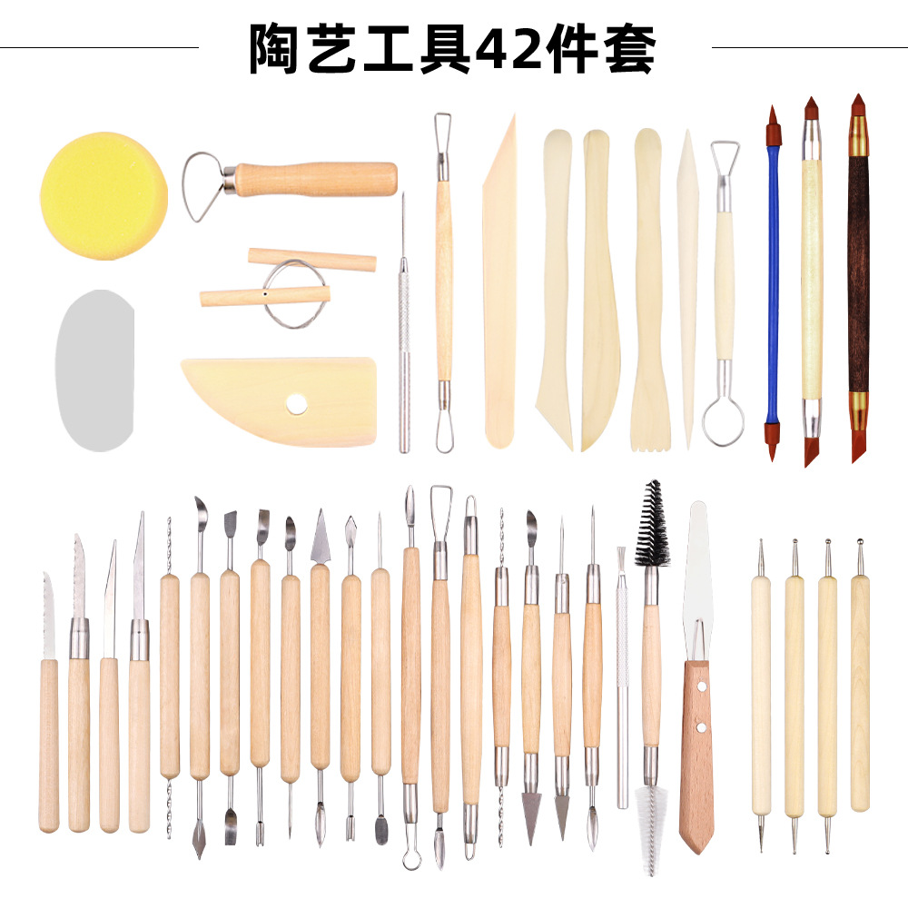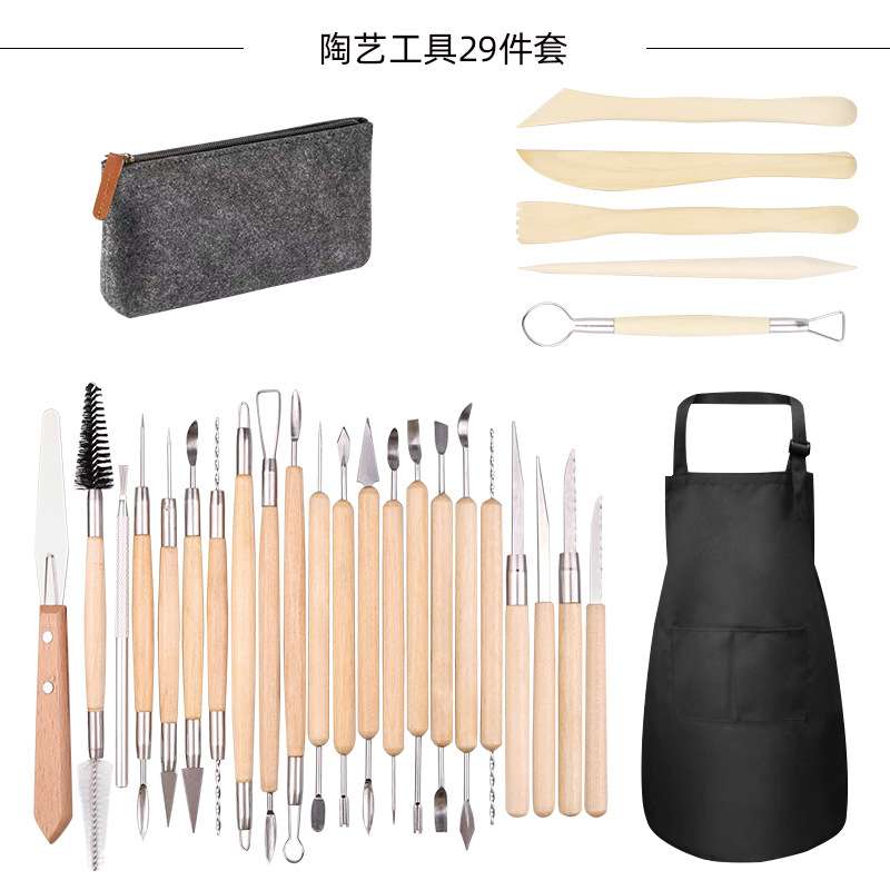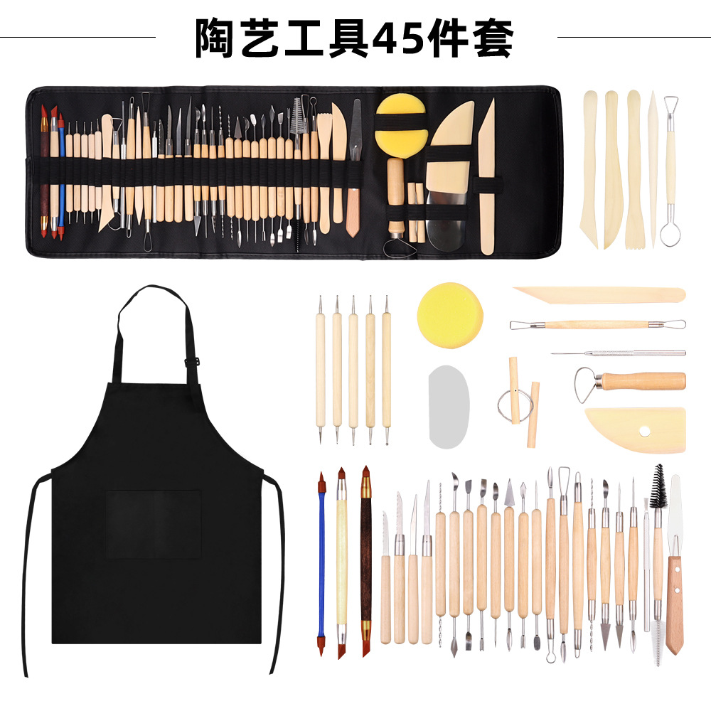 クロスボーダー陶芸道具エプロン付き泥塑彫刻刀45点セット軟陶泥補助工具diy樺木メーカー