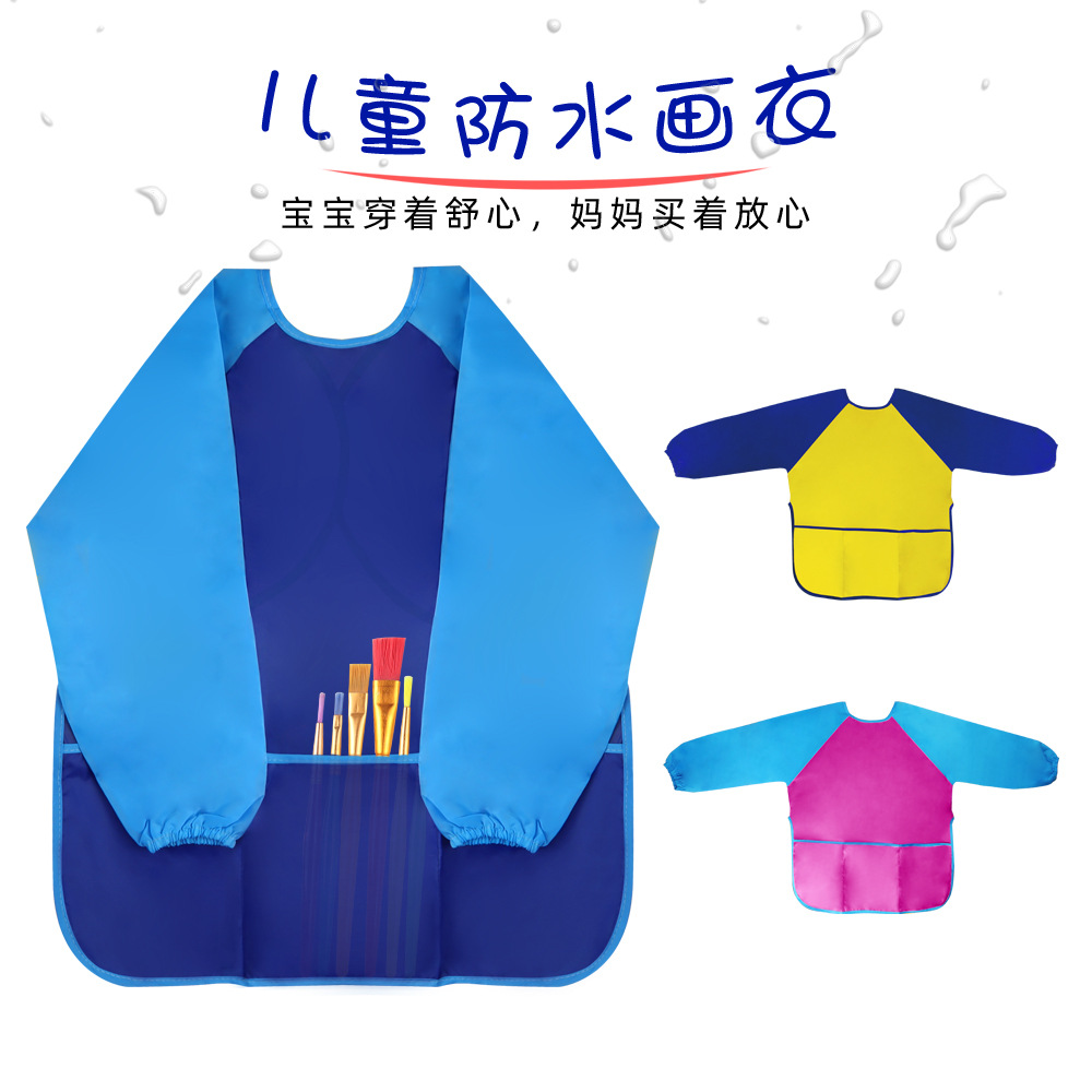 国境を越えた新型幼児防水長袖画衣児童防汚画両面食事カバー創造美術用品