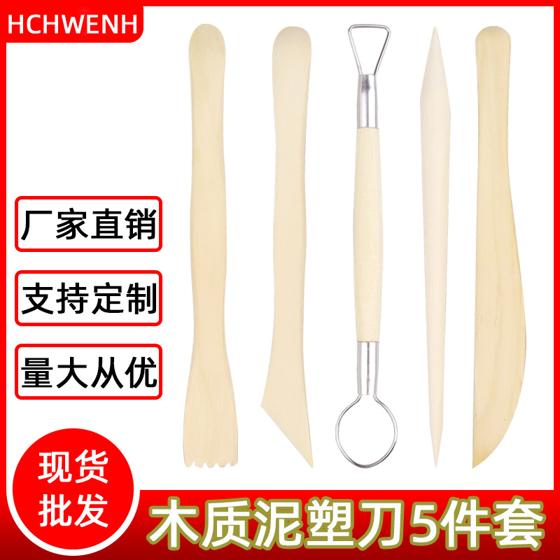 越境軟陶泥6寸木質5本の木刀陶芸の形の刀の手作業で白地の工具を修理します。