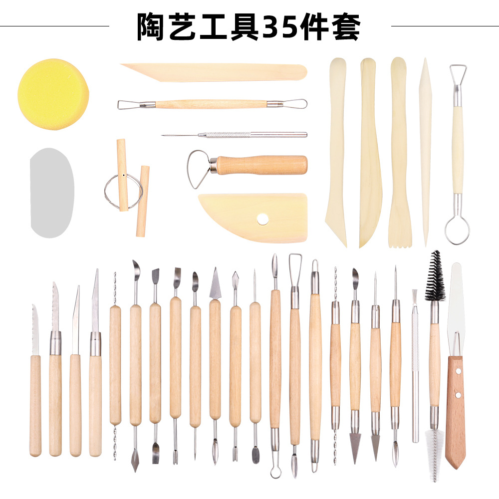 木質工具35点セット泥塑刀彫刻石塑土補助工具セット軟陶修白地工具メーカー