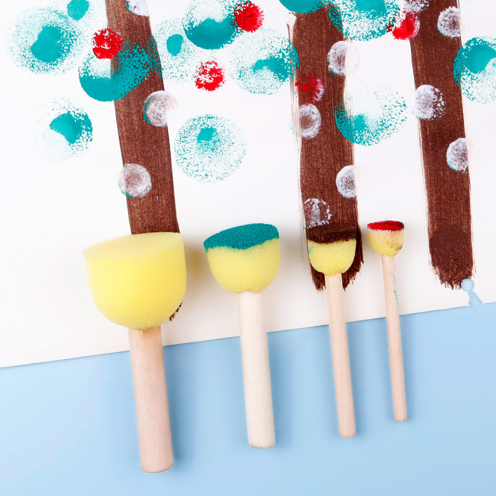 4本のスポンジキノコの頭は早くdiy幼児の絵画の印鑑の原木の取っ手の1-4号の丸い落書きのツールを教えます。