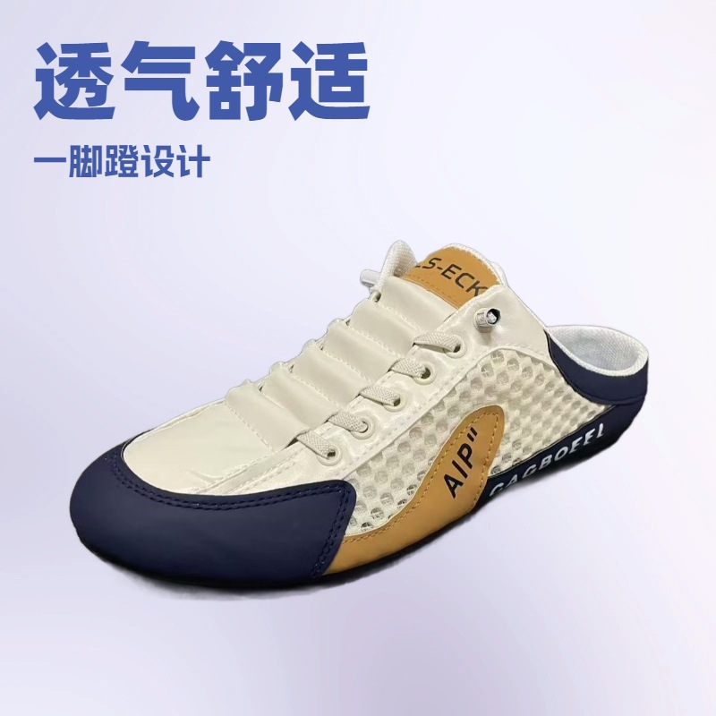 包頭ハーフスリッパメンズ夏通気性ヒールレスメッシュサンダルメンズアウターウェア軽量ドライビングカジュアルビーチサンダル