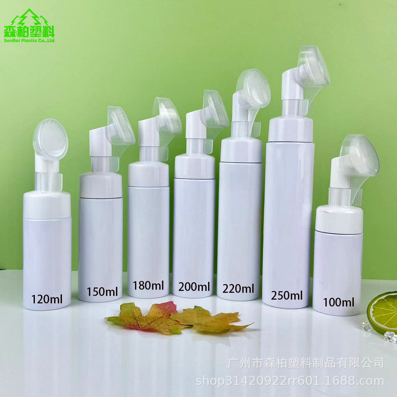 100~250ml PET製 プッシュ式 ソフトシリコンマッサージブラシヘッド付き 泡洗顔ムースボトル プッシュ式泡立てボトル 詰め替えボトル