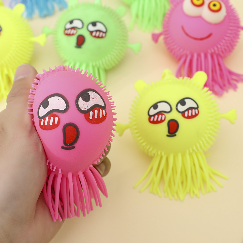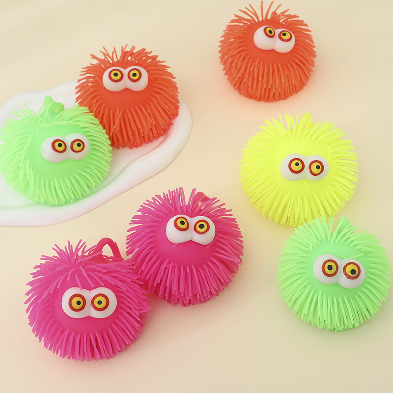 創意的なストレス解消凸眼発光毛玉閃光凸眼発散ボールの露店ソース子供用ソフトゴム玩具卸売り