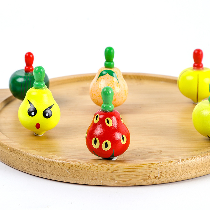 小さいサイズの木製のカラーの果物のジャイロは小さいジャイロの伝統のノスタルジックな子供の木の益智の露店のおもちゃを回転します。