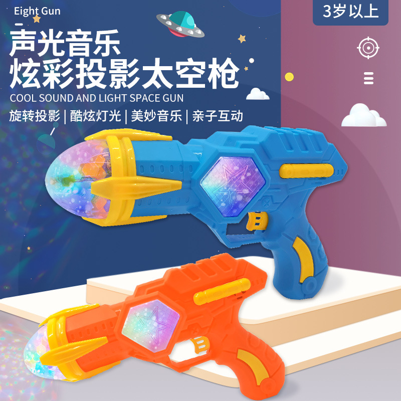 子供の電動のおもちゃの銃の発光の投影の銃の音楽の音の光のピストルの七色のクールな銃は卸売りを押して売ります。