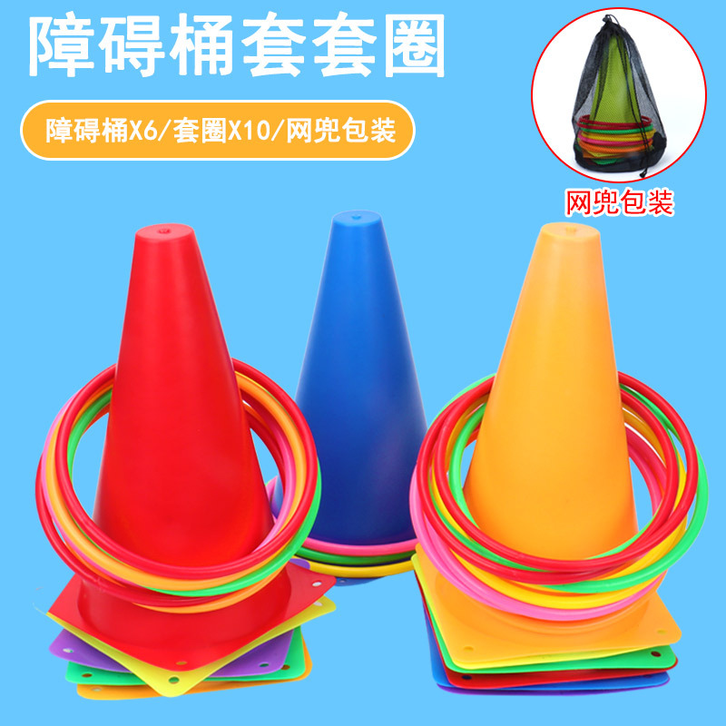 カラフルなプラスチックのロゴのバレルの卸売アウトドアスポーツトレーニング器材プラスチック投げサークルサッカートレーニング障害物のバレル