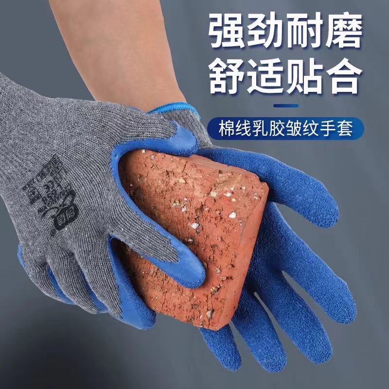 誠実218糸しわ浸ゴム手袋耐摩耗性滑り止め綿糸掛け角賃金仕事木工建築男
