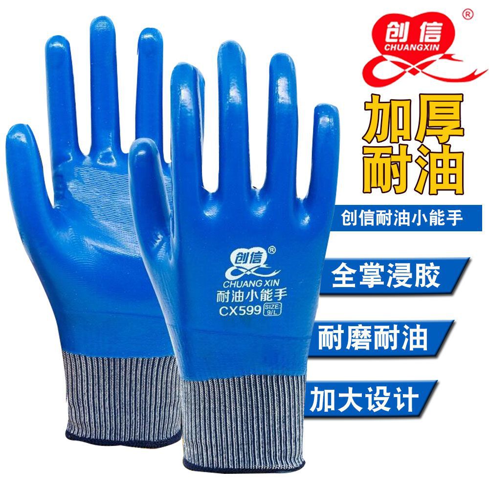 創信手袋cx599耐油小能手にゴムをかけるニトリル手袋防水耐摩耗性厚い労働保護手袋卸売り