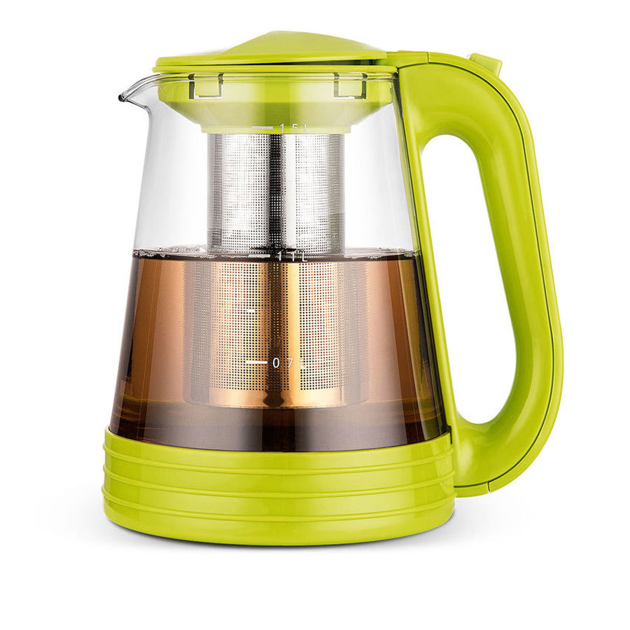 メーカー直販耐熱ガラスプラスチックグリーンティーポットファッション外観304ステンレスフィルター茶器2l