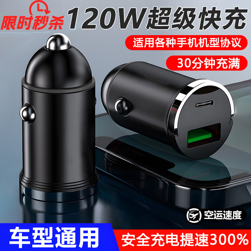 120W超急速充電車載充電器車用ステルス車充電は華為リンゴ米vivoフラッシュ充電に適用される