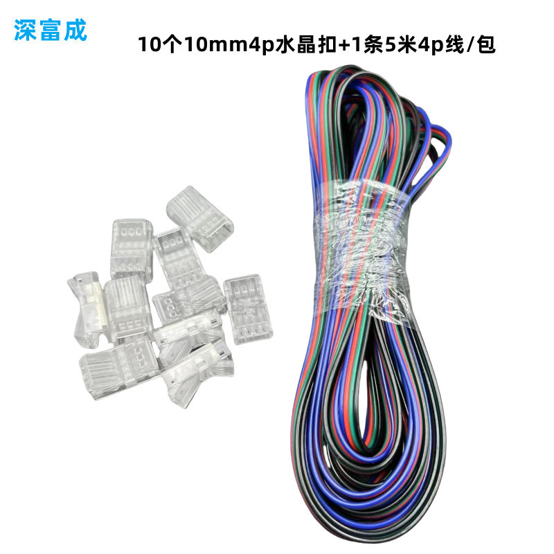10mmLED透明無溶接コネクタ、クリスタルバックル付き、配線アクセサリーパック、RGBledライト端子、ライトストリップ