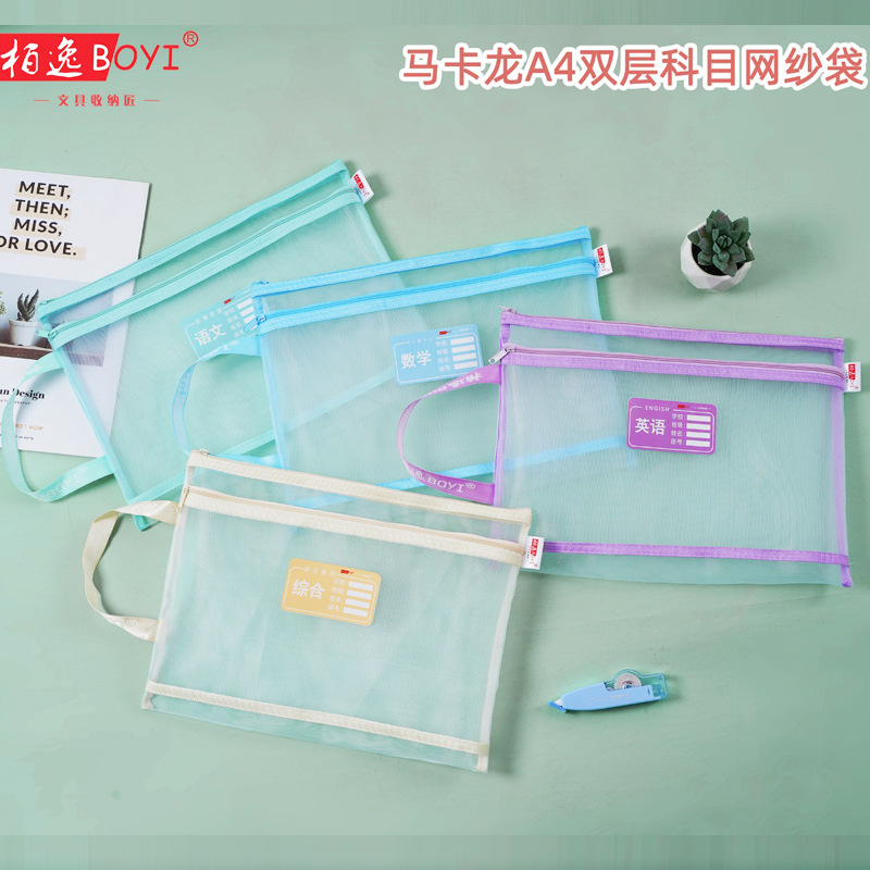 小学生学科科目分類書類袋透明網糸二重片道大容量循環可能作業試巻