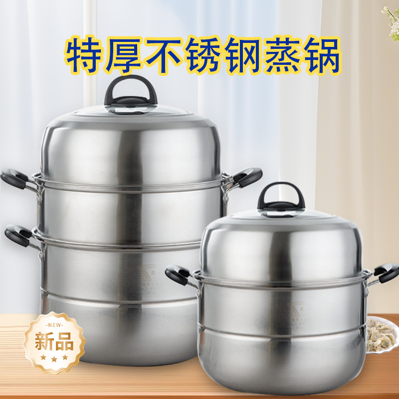 精品ステンレス蒸し鍋多層厚大容量蒸魚鍋蒸煮一体鍋多機能スープ鍋卸売り