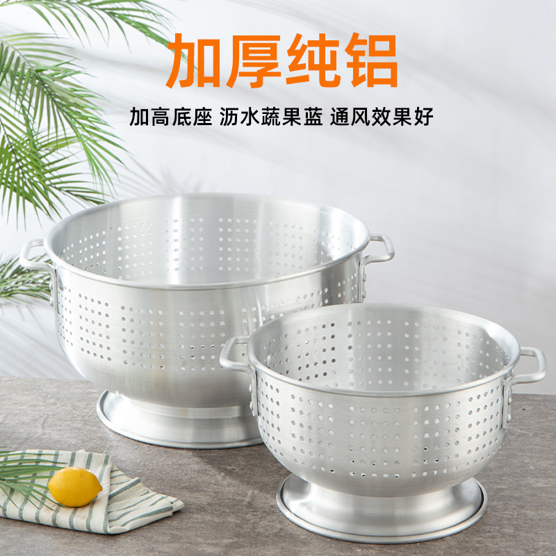 輸出アルミ製の米を洗うふるいは足の両耳の果物のたらいを持っています。
