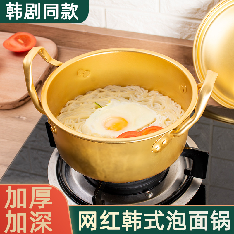 韓国のカップラーメン鍋のラーメン鍋の家庭用の小さい鍋のガスの韓国式ネットの赤い耳の鍋のインスタントラーメンの鍋の黄色のアルミニウムの鍋