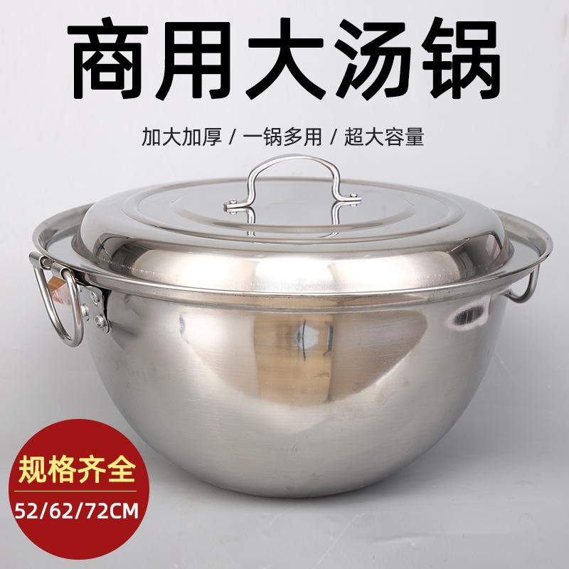 ステンレス鍋の大きい鍋の大きいスープの鍋の電磁ストーブの鍋の商用の特大サイズの丸い底の鍋はスープの鍋の双耳の炒め鍋を深めます。