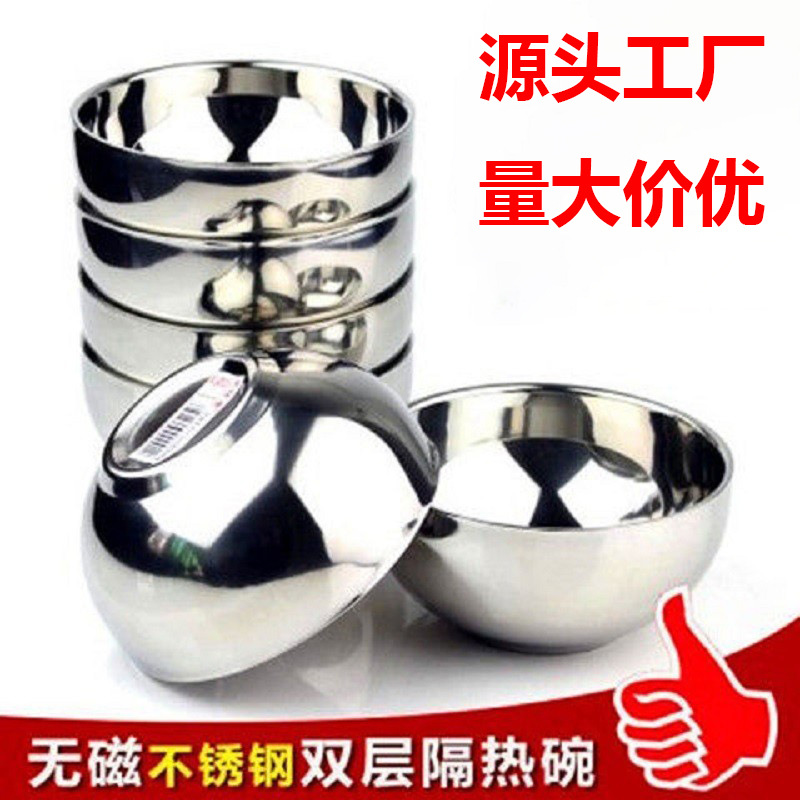 卸売ステンレス二重層ボウル溶接縁玉蘭ボウル幼稚園用厚手断熱ボウル家庭用子供用食器