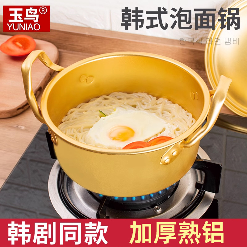 韓国式カップラーメン鍋家庭用小煮鍋煮麺鍋黄アルミ鍋韓国ラーメン鍋ガスコンロ双耳インスタントラーメン鍋