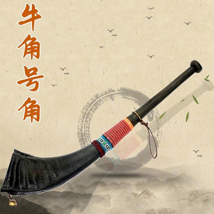黒水牛ラッパ牛角ラッパ楽器古代道士が楽器の道具を演奏します。