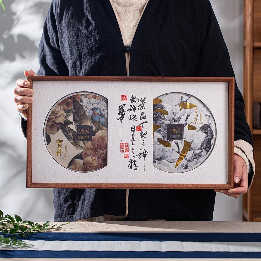 プーアル茶双餅礼箱200357グラム2餅入実木沙利通版包装箱空箱展示