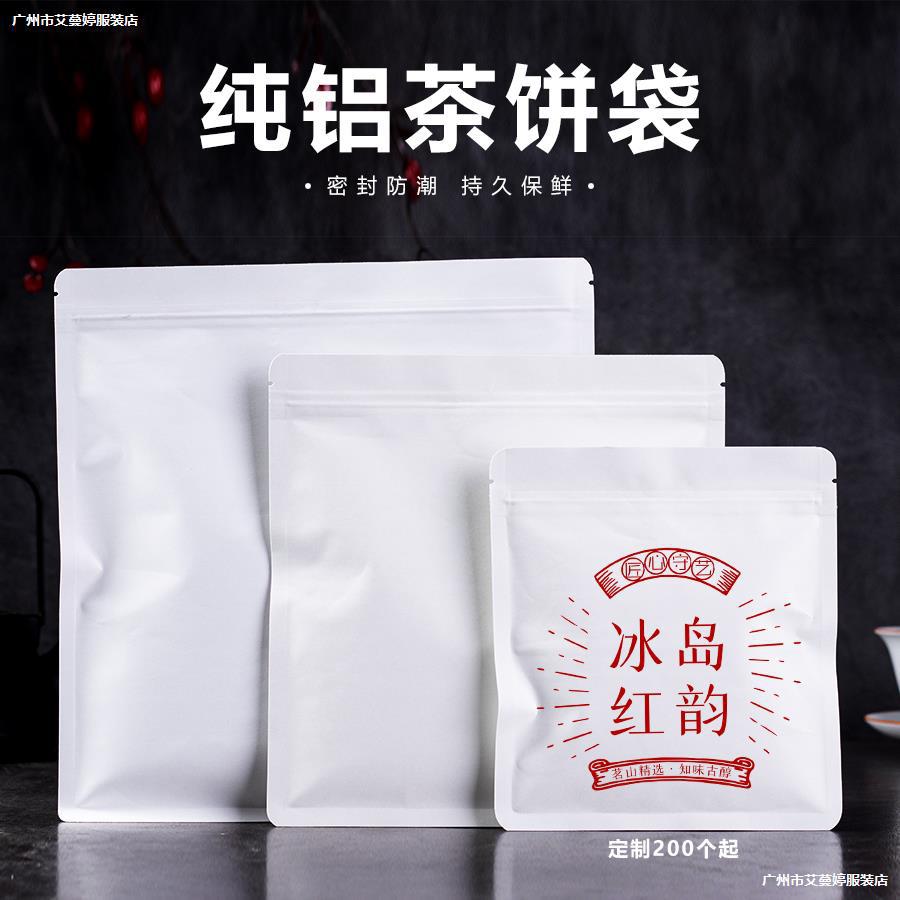 茶の密封袋の白い牛革の純アルミニウムの自封袋のプーアル茶の白いお茶はお茶の収納袋のお茶の餅の袋のLOGOを保管します。