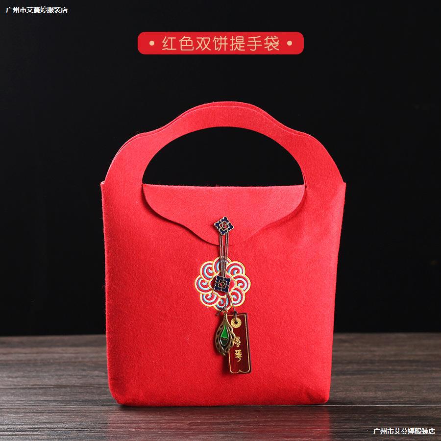 大きいサイズのギフト包装袋フェルト刺繍プーアル茶餅袋白茶餅布袋彫刻可能手提げ袋