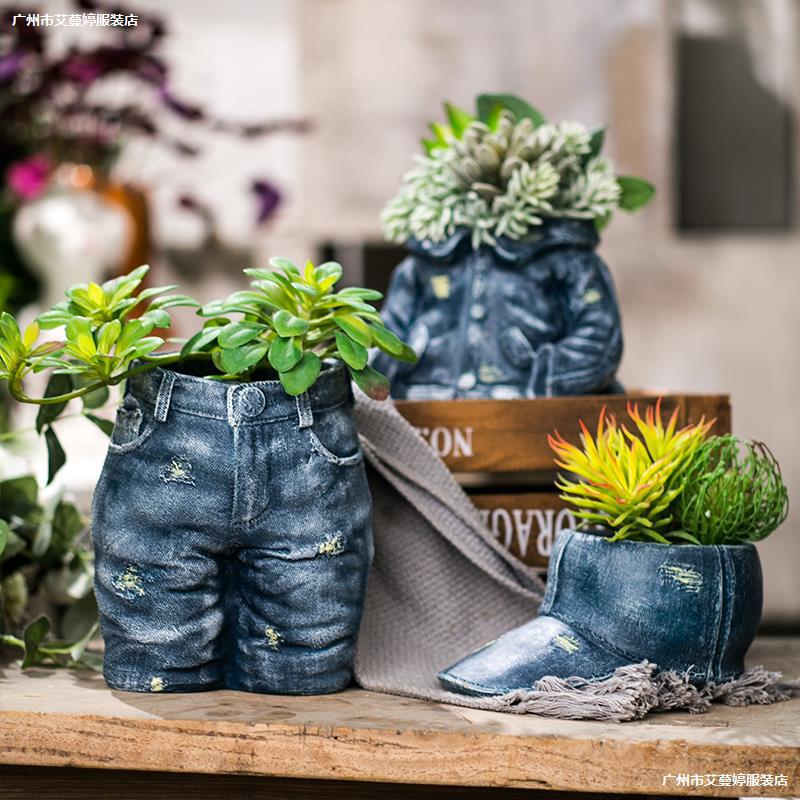 。 クリエイティブウエスタンジーンズ植木鉢服パーソナライズされた中庭の装飾品レトロなドライフラワー植木鉢多肉植物グリーン植物鉢植え