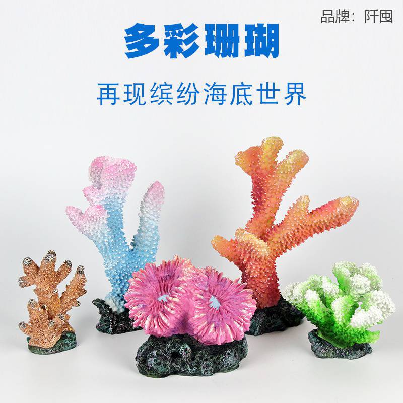 サンゴの置物と水の道具の金魚鉢の装飾をシミュレーションします。
