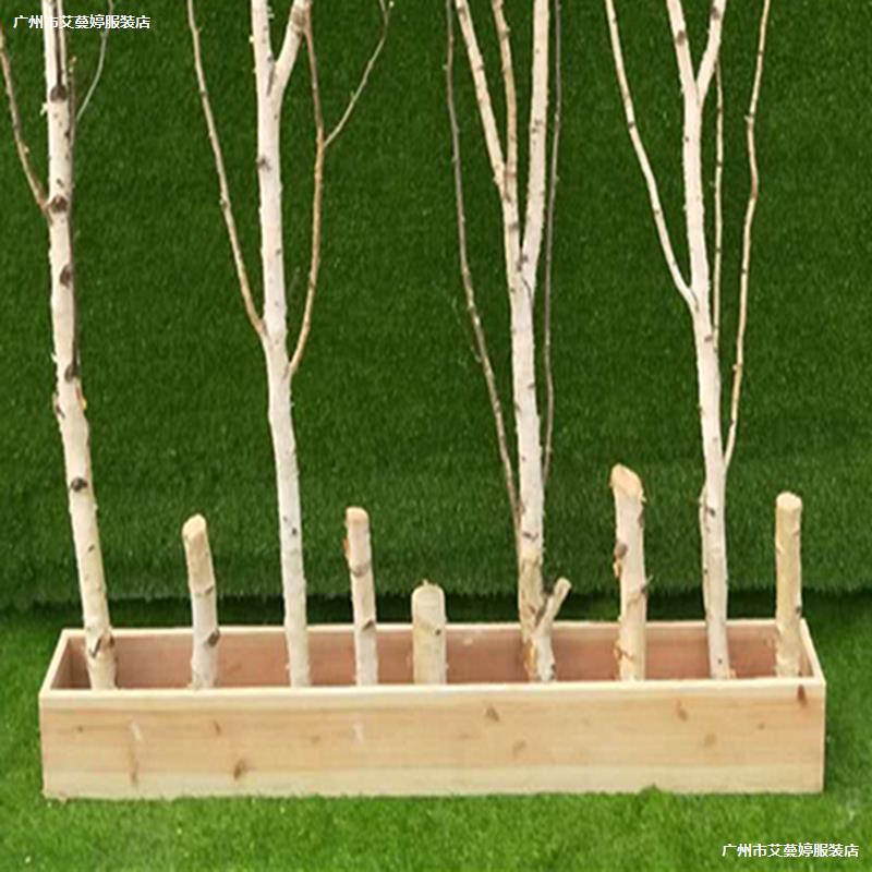 。 白樺の幹、白樺の枝、玄関窓のパーティション装飾、ウェディングアーチ、木製ベース、木箱底板、木製