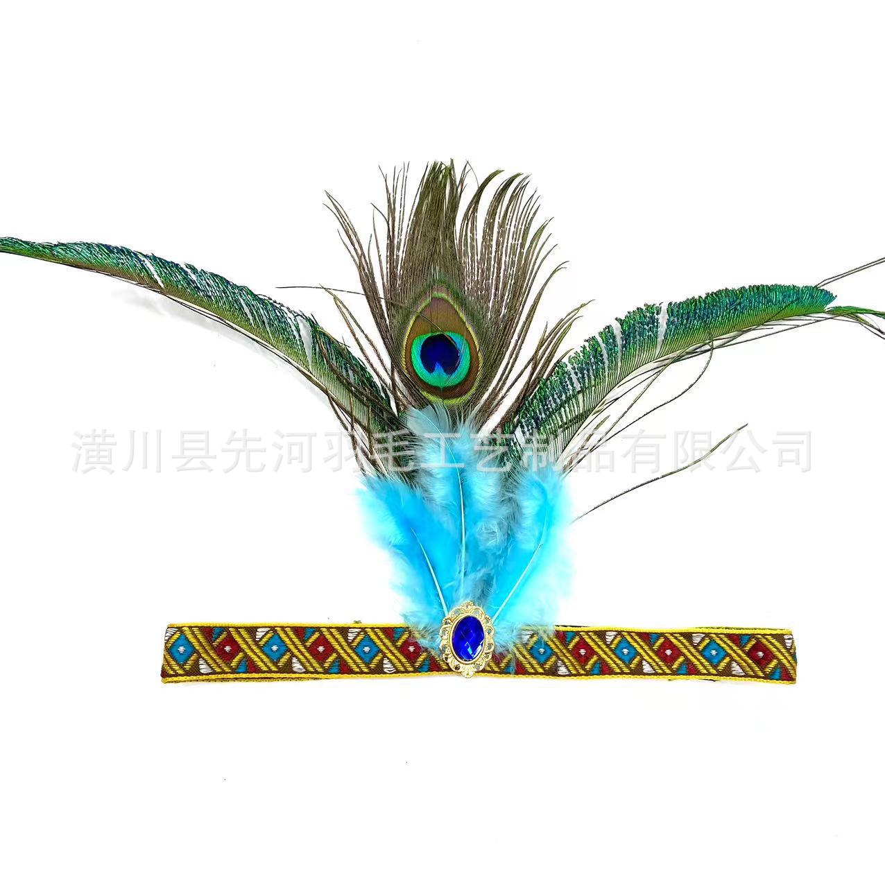 国境を越えたインディアン孔雀の羽の頭飾り民族風クリスマス舞踏会の子供の大人の舞台ショーの道具