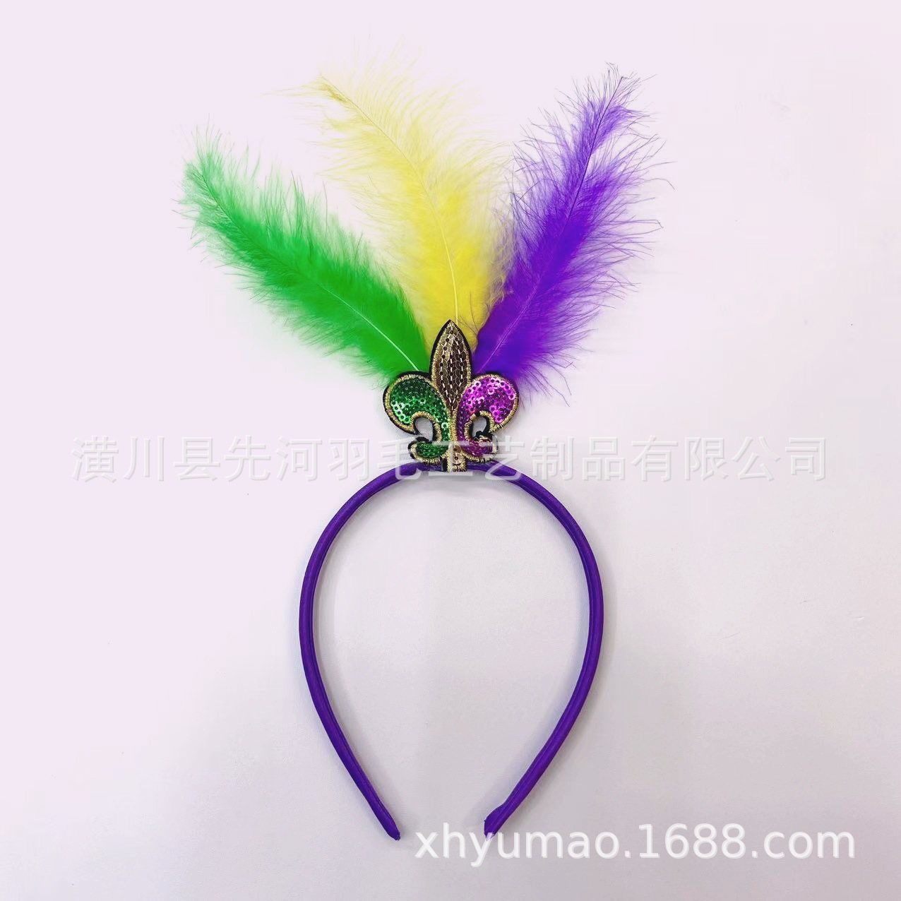 国境を越えたブラジルのカーニバルパーティーの舞踏会の三色のスパンコールの羽のカチューシャのハロウィーンの化粧のアクセサリーの頭飾りのヘッドバンド