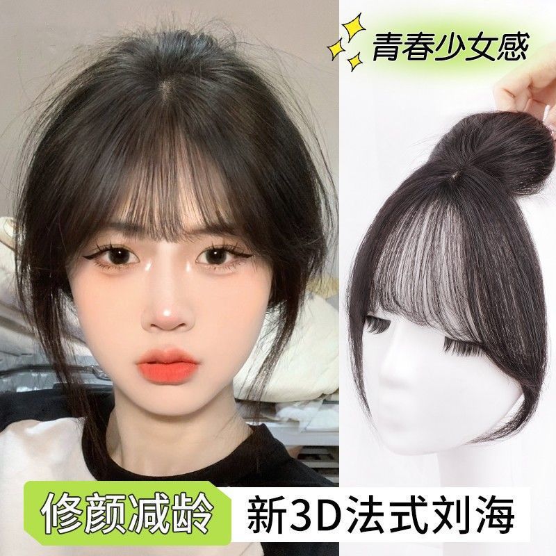 女性用3Dフレンチ前髪ウィッグ、頭頂部交換用ウィッグ、自然な人工毛の額カバー、白髪、エア前髪ウィッグ