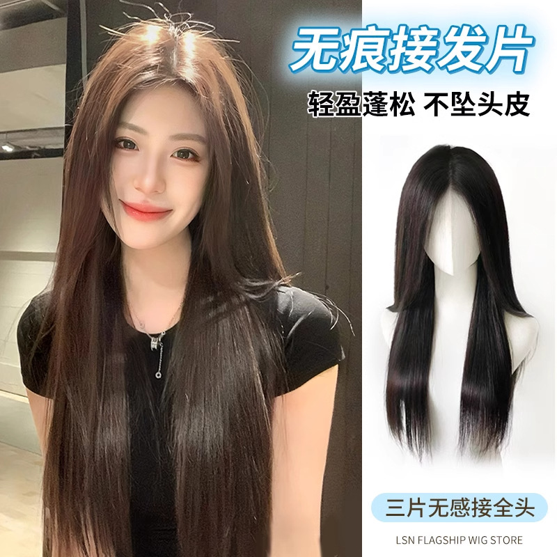 スカイツリーのかつらの女性の長髪の三枚式の増発量はふわふわしています。