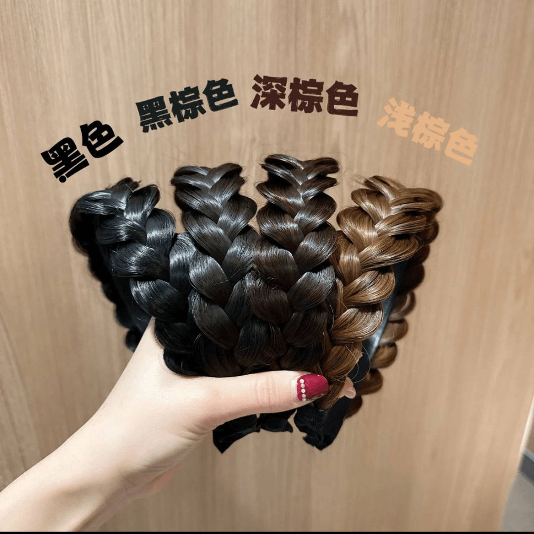 麻花のお下げの髪のカチューシャの女性をシミュレーションします。