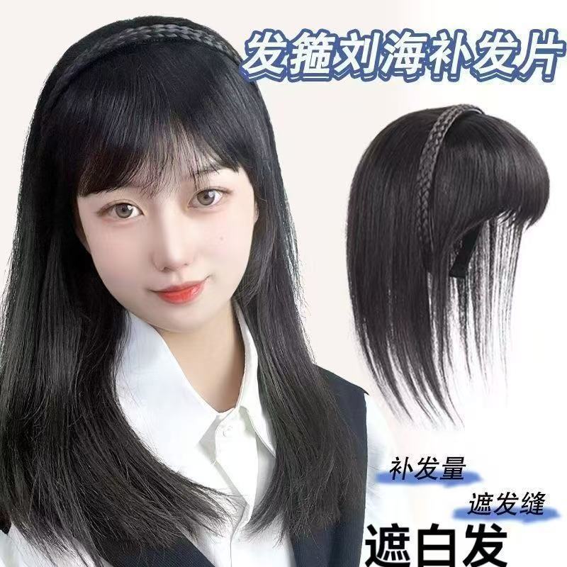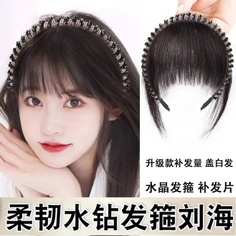 女性用ラインストーンヘアバンドと前髪一体型ウィッグ、前頭カーテン、前髪カット、白髪カバー、エア前髪ウィッグ