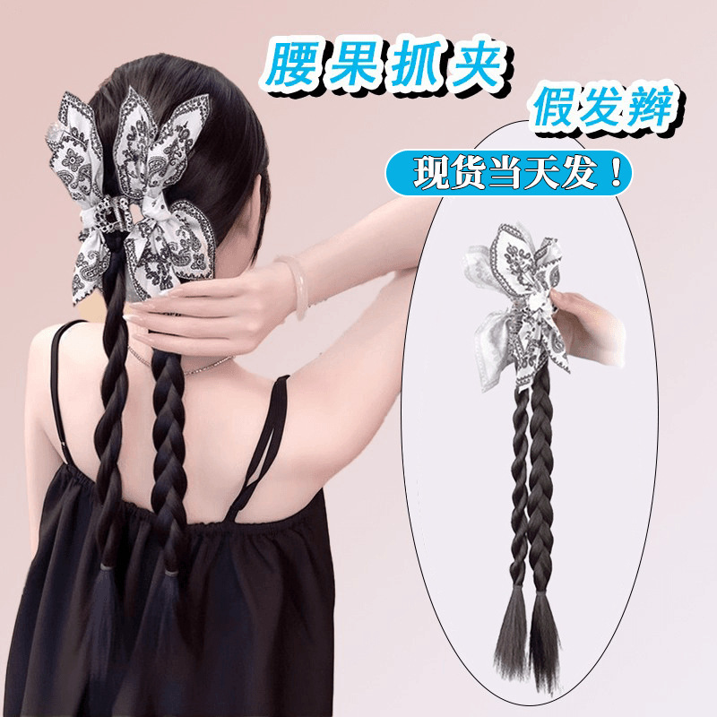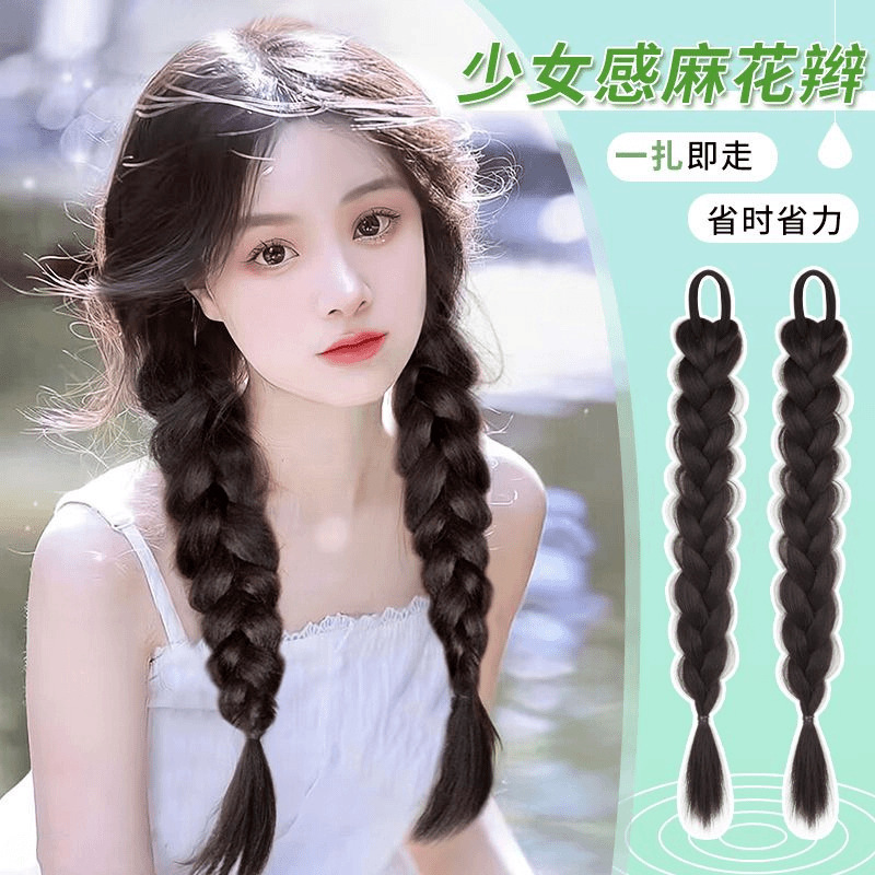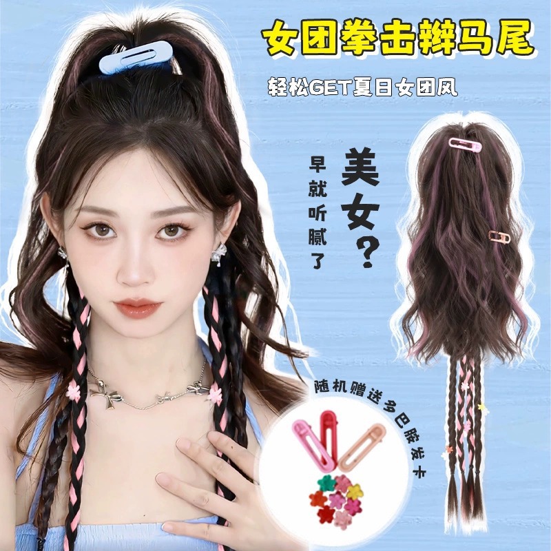 女性用ウィッグ ポニーテール 甘くてクールなナチュラル三つ編み ネットセレブ フィッシュボーン ボクシング ロング三つ編み ホットガール編み込み フェイクダブルポニーテール